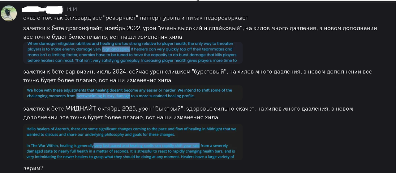 В ответе на последующий вопрос разработчики сообщили, что данные изменения будут введены с запуском предварительного обновления Midnight. А чтобы помочь игрокам адаптироваться к ним, авторы внесут изменения в сражения с боссами недавних рейдов, на которых люди еще продолжат ходить.