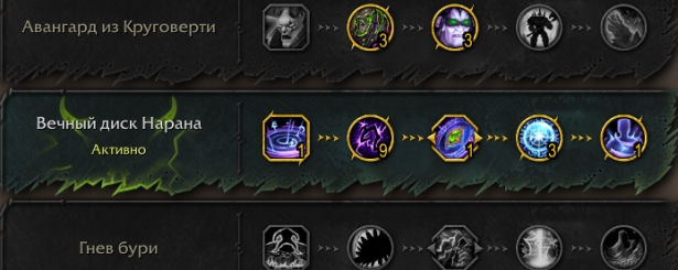 • При нажатии ПКМ по иконке откроется окно отображения талантов артефакта в окне информации о персонаже на месте вашей шеи, колец и аксессуаров. Есть несколько опций: