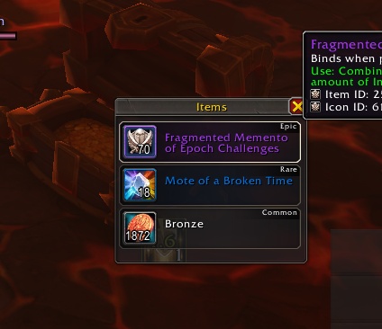 Как отметили внимательные игроки, прохождение старинных эпохальных+ подземелий в Remix: Legion больше не награждает гарантированным предметом экипировки под уровень подземелья, как это было ранее. Теперь вместо него игроки получают гораздо больше Частиц расколотого времени, позволяющих создавать предметы рейдового снаряжения под уровень экипировки персонажа.:cut:
