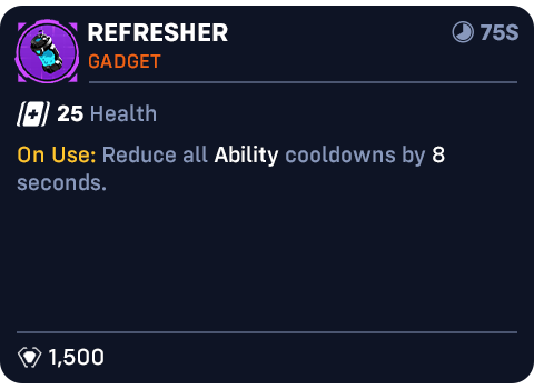 • Refresher: If your build is centered around your abilities—like Soldier: 76’s Helix Rocket Build or Juno’s Torpedo Build—this ultra-expensive capstone can turn your Hero into a superstar. Reducing cooldowns by 8 seconds means you can essentially double dip abilities with devastating consequences for your enemies.