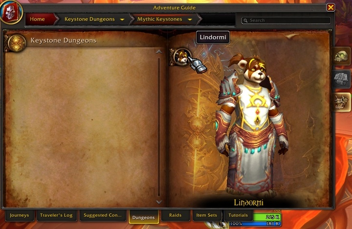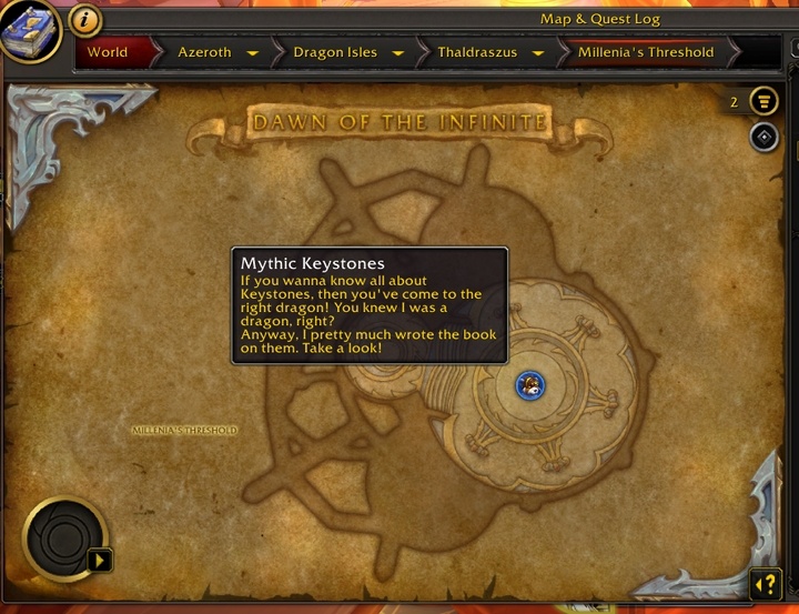 получил раздел, посвященный эпохальным+ подземельям. В нем игроки могут отыскать некоторую базовую информацию об этом режиме, включая модификаторы, добычу и даже выяснить, где отыскать заведующую ключами драконопандаренку Линдорми.