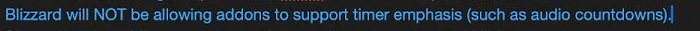 • У аддонов не будет возможности каким-то образом отмечать выбранные отдельные способности боссов (например, добавлять отдельный звуковой отсчет для конкретных механик), однако встроенный интерфейс получит опцию звуковых оповещений для некоторых важных эффектов.