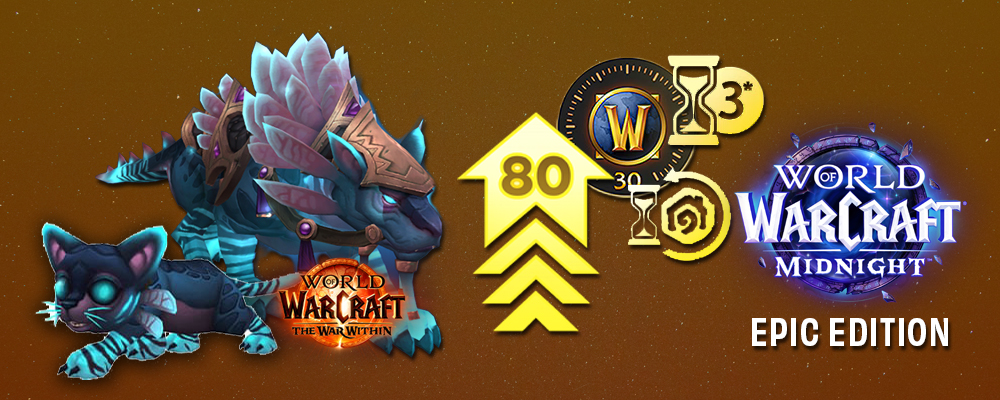 - 1 случайному игроку, который вовремя пройдет подземелье любого уровня с активным живым отслеживанием в настольном приложении RaiderIO (каждое дополнительное прохождение повышает шансы на победу), будет выдан подарочный комплект, что включает эпическую версию дополнения Midnight, 60 дней игрового времени, транспорт Сияющая звездная пантара, питомца Сумрак