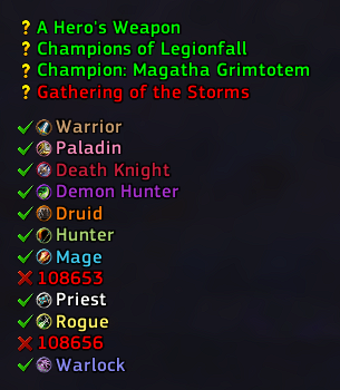 /run local t={-288,-272,3,7,6,0,8,4,9,5,2,1}for i,id in pairs(t) do local _,_,c = GetAchievementCriteriaInfoByID(42565,108648+id)print((GetClassInfo(i)),c and"\124T136814:0\124t"or"\124T136813:0\124t")end