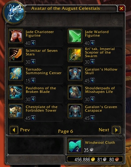 В WotLK Classic появились и новые валюты, за которые можно было приобрести экипировку из прошлых фаз. Нечто подобное присутствует и в MoP Classic, где есть торговец, принимающий Фрагменты камня небожителей.