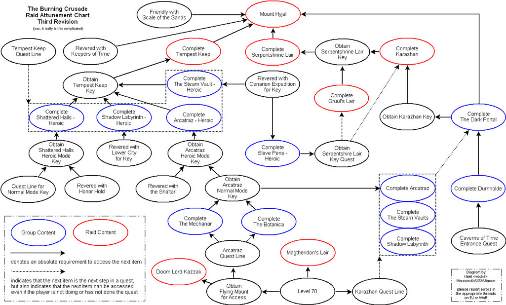 Схема цепочек на получение доступа к подземельям и рейдам The Burning Crusade