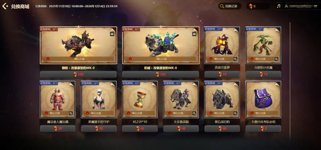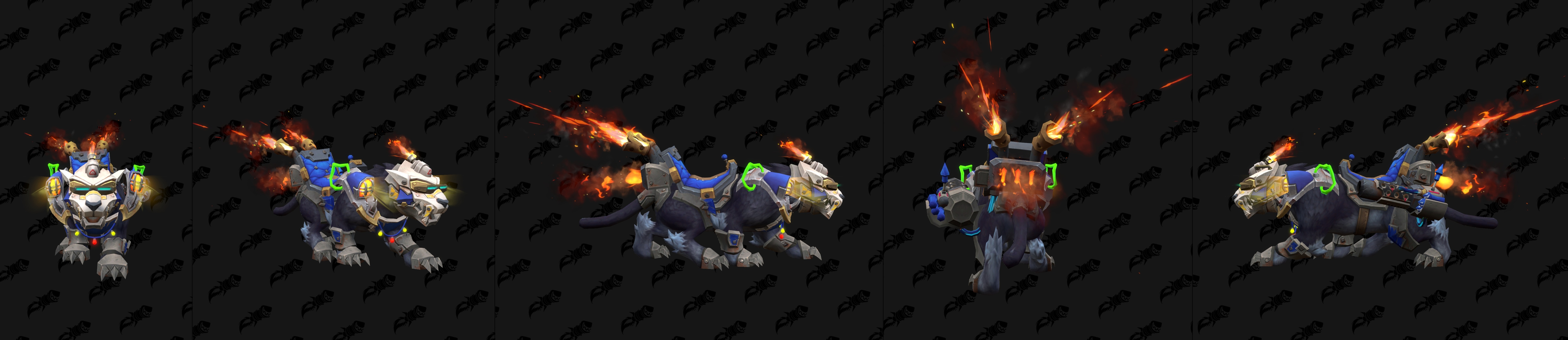 • Стальной прототип пантеры МК-0 – "Воины Стальной Орды, которые первыми прошли через Темный Портал, захватили свирепого ночного саблезуба. Мастера Черной Горы вооружили его магматической броней, превратив его в боевое оружие. Воители могут настроить его детали на постаменте трансформации в соответствии со своим стилем боя и доминировать на поле битвы."