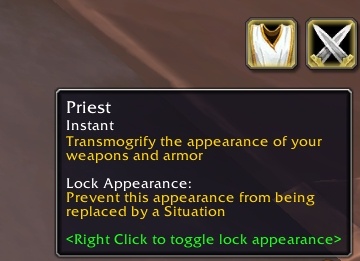 • Значок наряда можно вынести на панель как способность, чтобы применять его нажатием (также менять наряды можно в окне трансмогрификации)
