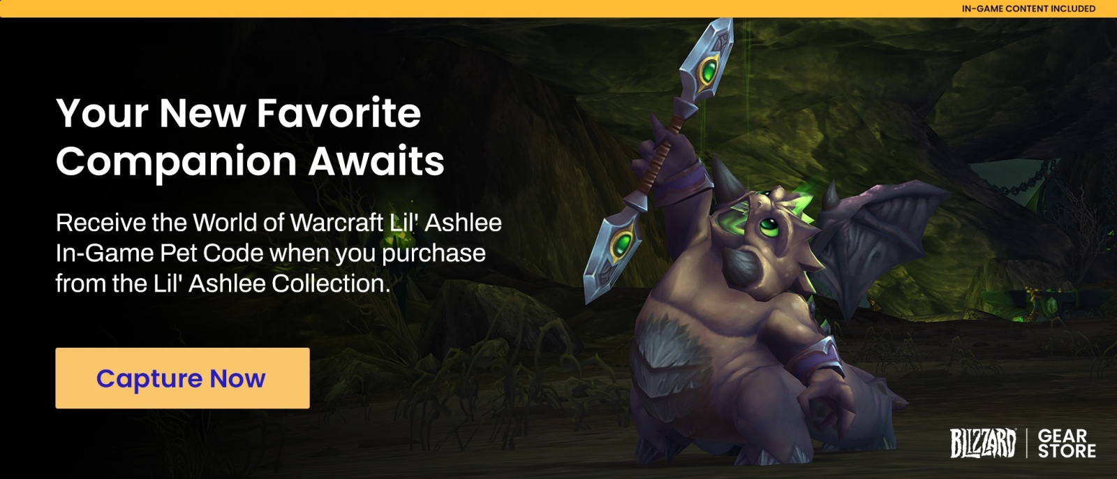 В магазине физических товаров Gear Blizzard скоро будет запущена новая акция, в рамках которой за покупку любого предмета по World of Warcraft из подборки в подарок дается код на нового питомца в виде маленького властителя преисподней – Пепличку (Пепличка).:cut: Акция проходит с 24 ноября по 8 декабря.