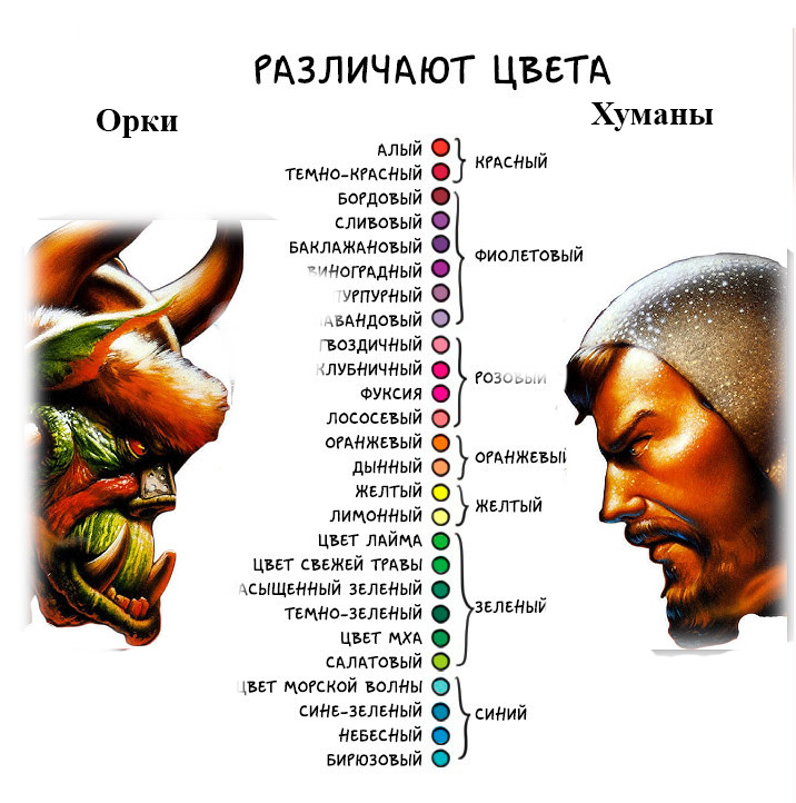 Участники тестирования показали, как выглядят некоторые предметы с раскраской в каждый из этих цветов: