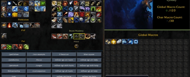 Многие игроки World of Warcraft так или иначе хотя бы раз пользовались системой макросов, чтобы немного облегчить свою игровую жизнь, а некоторые умело жонглируют целыми связками, позволяющими сэкономить немало времени и добиться высокой эффективности в самых разных задачах. Стандартный интерфейс создания и редактирования макросов не может похвастаться особым удобством, да и разработчики уже долгое время его не обновляли, а потому процесс работы с ним бывает весьма проблематичным.:cut: