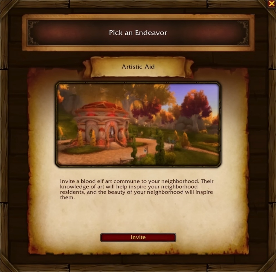 Художественная община эльфов крови укрывается в окрестностях, пока ее дом подвергается нападению, и хочет поделиться своим художественным мастерством с соседями.