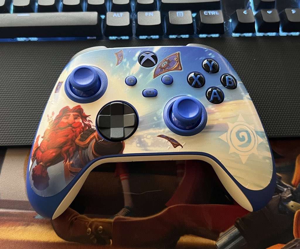 презентовали синий контроллер Xbox, который можно оформить наклейками со знаковыми персонажами из разных миров, например Ксал'атат из WoW, Лилит из Diablo или Юноной из Overwatch.
