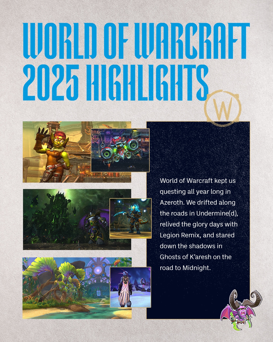 Год подходит к концу, и многие уже принялись подводить его итоги, вспоминая о событиях и успехах уходящих дней. К ним присоединилась и глава Blizzard Джоанна Фэрис, что выпустила цифровой ежегодник, в котором подвела итоги 2025 года для компании и поделилась развлекательной статистикой о некоторых нынешних играх.:cut: