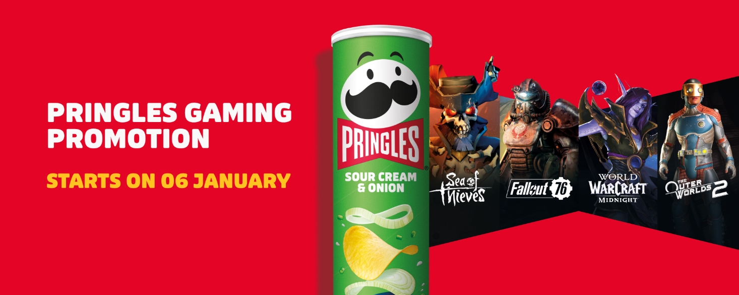 На официальном сайте производителя чипсов Pringles появилось сообщение, что 6 января 2026 г. начнется промо-акция с четырьмя играми – Sea of Thieves, Fallout 76, Outer Worlds 2 и World of Warcraft: Midnight. Какие-либо подробности не приводится, но, судя по всему, за покупку банок чипсов можно будет получить цифровые бонусы для этих игр.:cut: