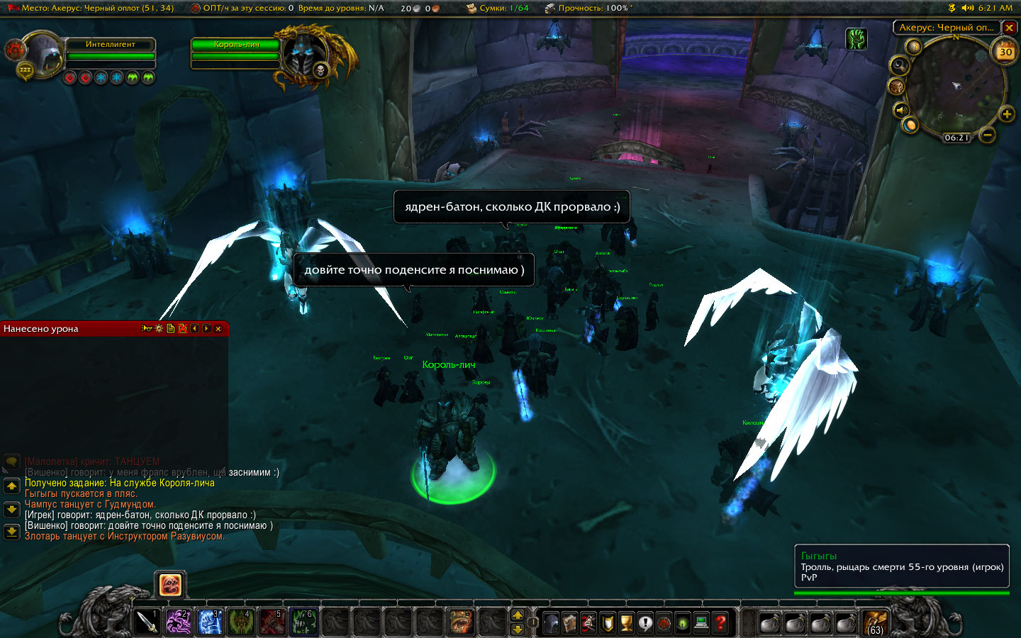 Забавный скриншот прислал Кьяр, РУ-Гордунни. Во время технического обслуживания он решил создать рыцаря смерти на одном из немногих неотключенных серверов. Идея оказалась неоригинальной..