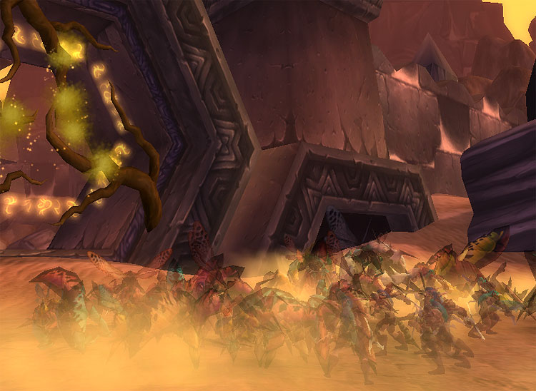 Сразу после открытия врат Ан'Киража из глубин города появляются Исполинские Анубисат-завоеватели.