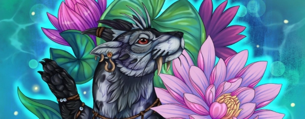 создает яркие иллюстрации и поделки вроде ловцов снова и фигурок персонажей, разрисовывая их в замысловатые цветочные узоры, в основном связанные с друидами, ночными эльфами и пушистой живностью.